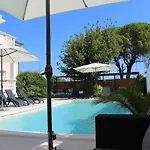 De fleste værelser har udsigt over terrassen. Dens privat badeværelse indeholder badehånklæder, håndklæder og en bruser.